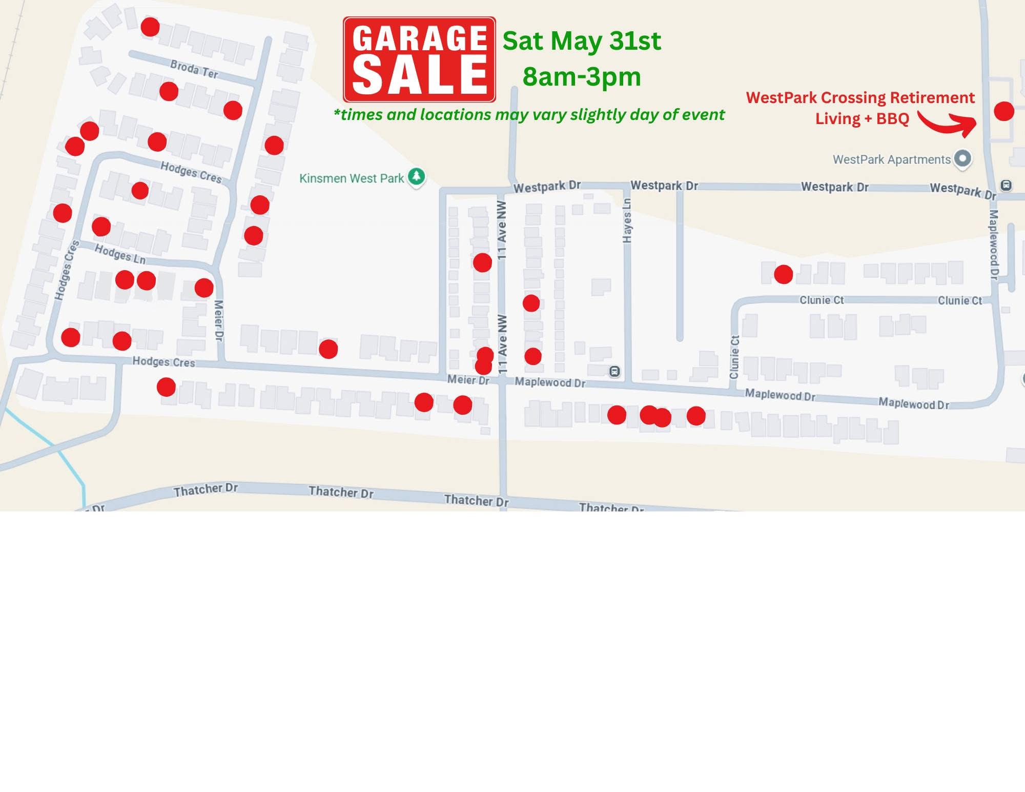 Join us for a treasure hunt extravaganza at the West Park Community Garage Sale day! On Saturday May 31st over 30 households will be hosting garage sales; ALL within ONE community! Don't miss out on the chance to score amazing finds! Mark your calendars and get ready to shop 'til you drop!”